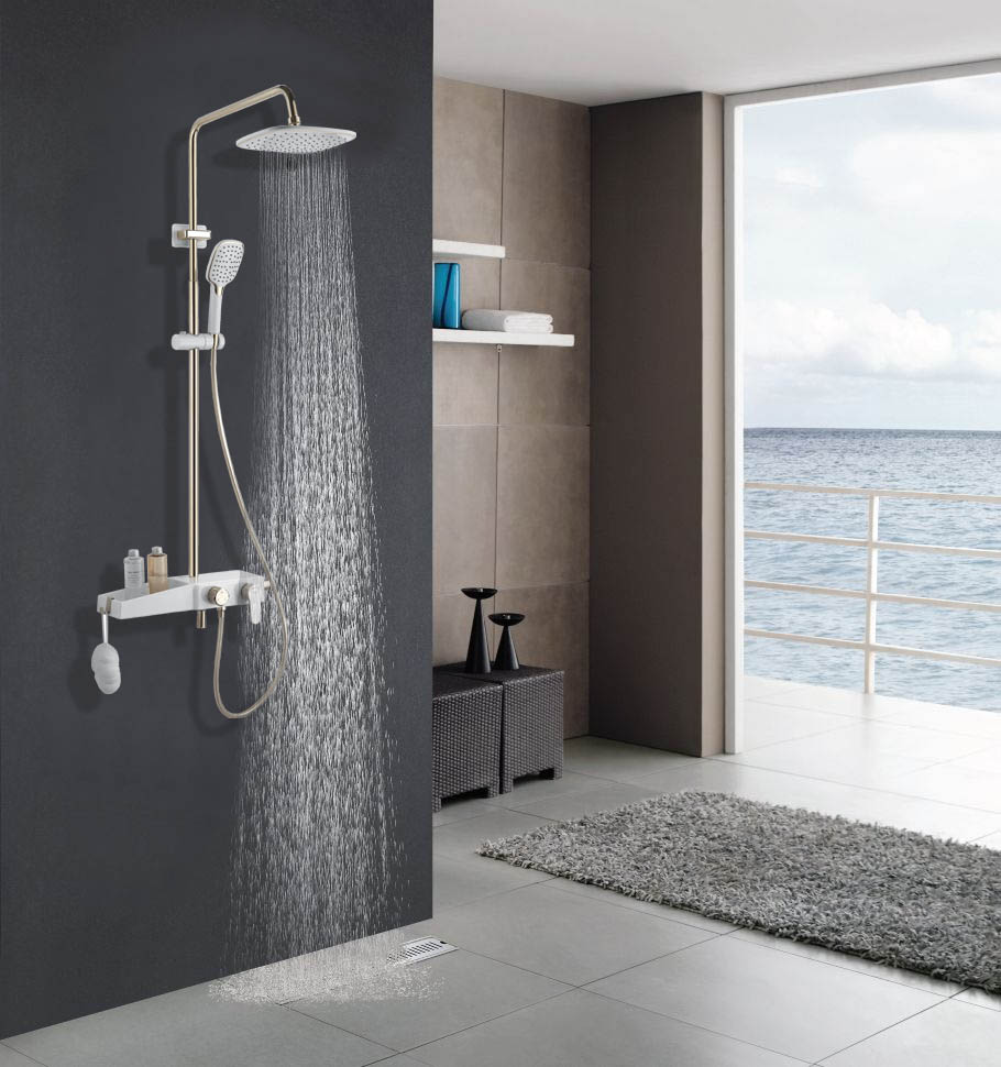 Душевая стойка Azario AZ-801-1, материал - латунь, цвет - белый/золото.