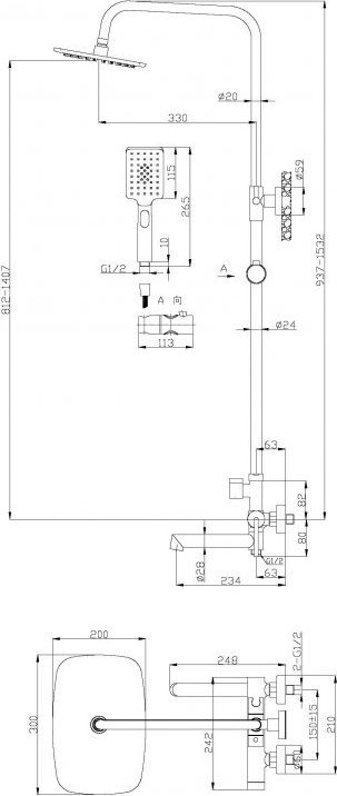 - Дополнительная информация: регулируемая высота верхнего душа