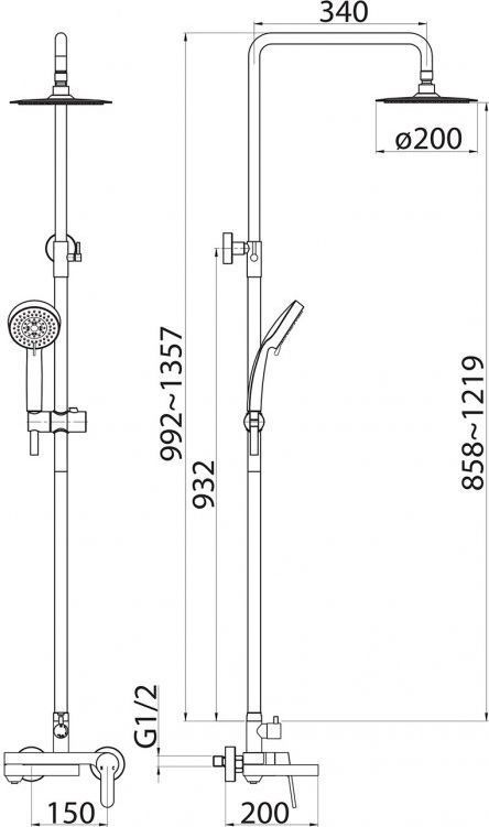 - Оснащение: эксцентрики, дивертор, душевой шланг, душевая лейка, верхний душ, смеситель