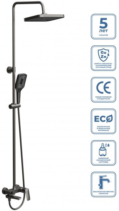 Душевая стойка BelBagno DUE-VSCM-GM, оружейная сталь