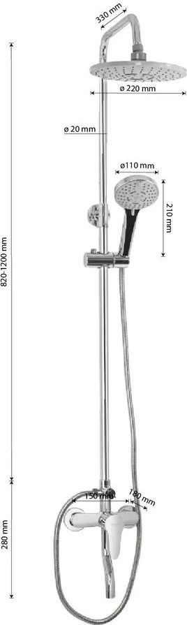 Смеситель + стойка душевая телескопическая "тропический душ" с двумя лейками в ванную / душевую комнату, хромированные. Смеситель шаровый, пластик АБС с коротким поворотным изливом, душевым шлангом и лейкой и дивертор переключения в трёх положениях. Картридж d = 35 мм, ручка литая, аэратор для экономии воды, чашки и эксцентрики. Душевая, регулируемая по высоте стойка с присоединением к корпусу смесителя и дополнительным креплением к стене и крючками для принадлежностей и большой круглой лейкой с эффектом тропического душа. Габаритные размеры: ширина смесителя 150 мм, высота 280 мм, длина излива корпуса 100 мм, высота телескопической стойки 820 - 1120 мм, длина излива стойки 330 мм, круглая двухрежимная душевая лейка d = 220 мм, круглая лейка тропический душ d = 110 мм, шланг 150 см. Вес - 3,100 кг, объём - 0,02900 м3. В комплекте корпус с изливом, чашки, эксцентрики, прокладки, стойка, дивертор, шланг, две лейки, крепления