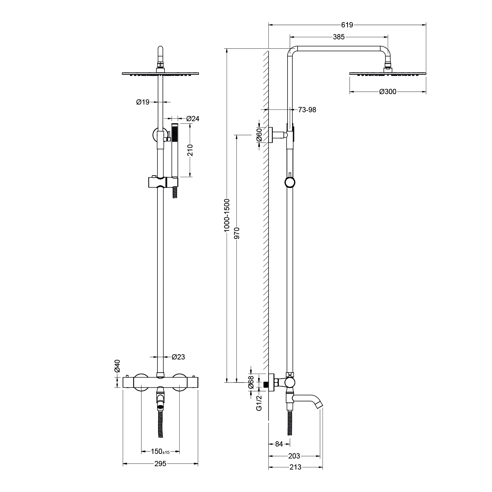 - Штанга душевой системы регулируется по высоте