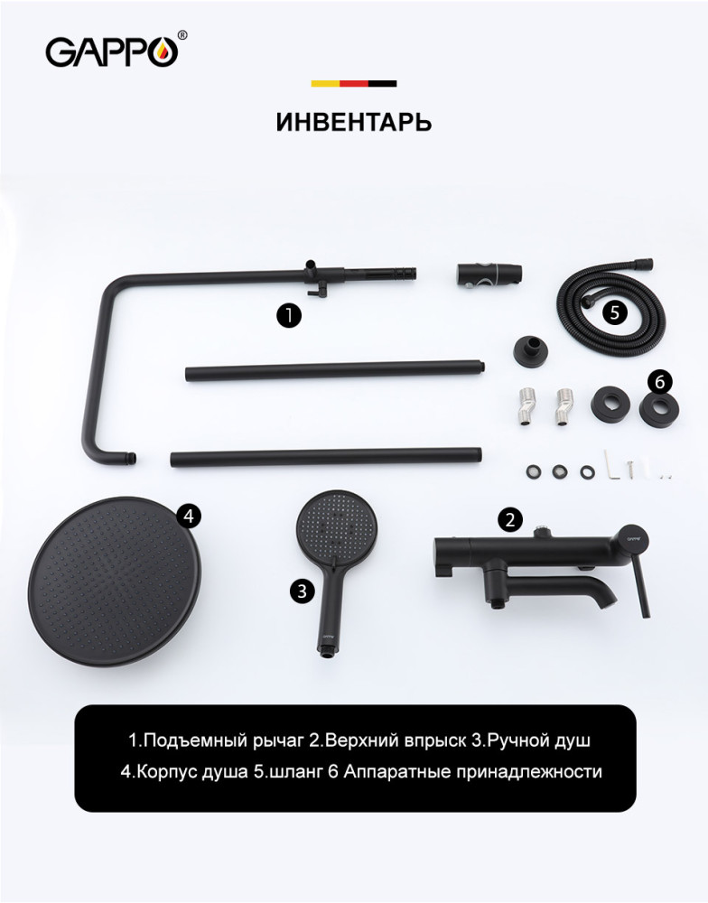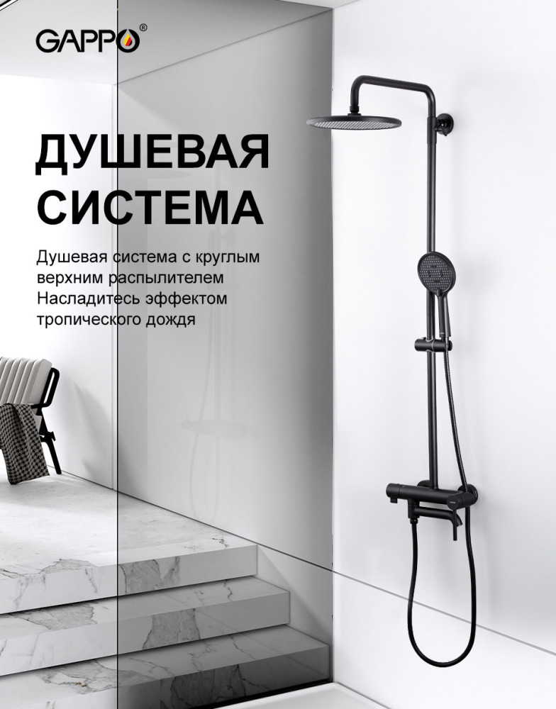 Душевая стойка Gappo G06-6 G2406-6, материал латунь, цвет чёрный.