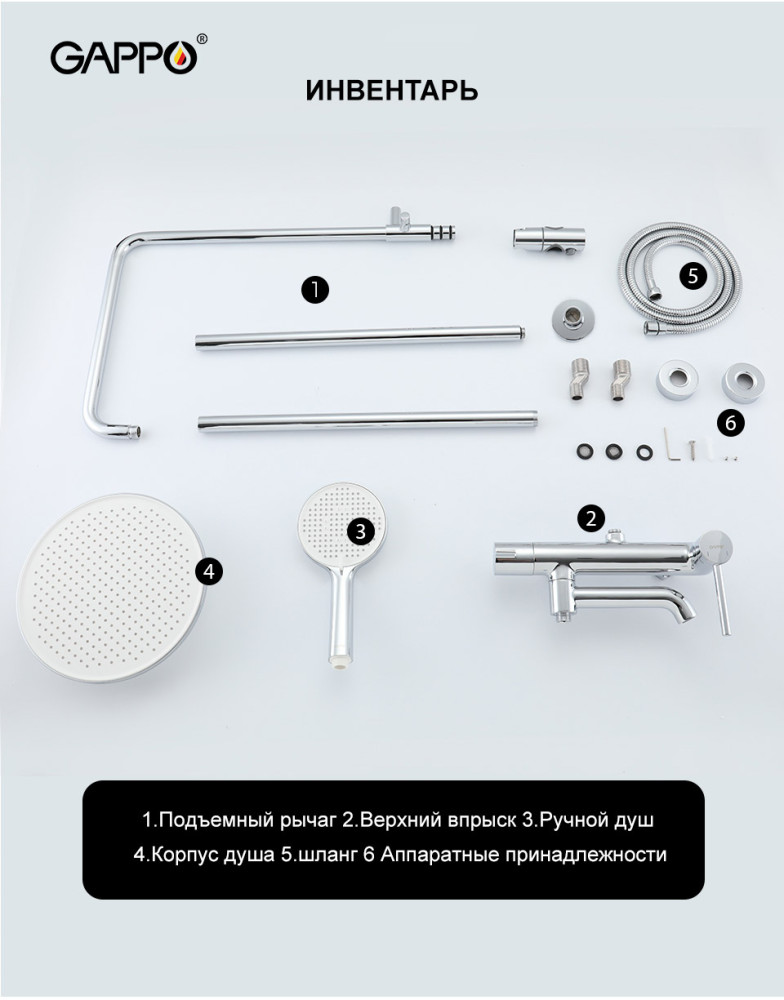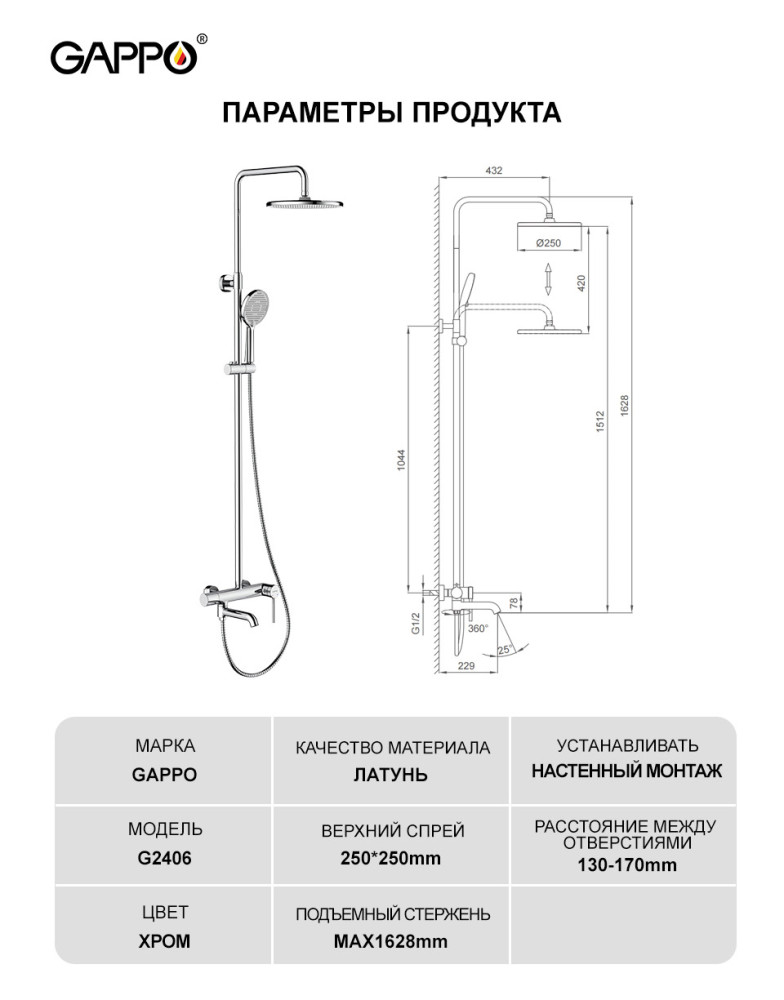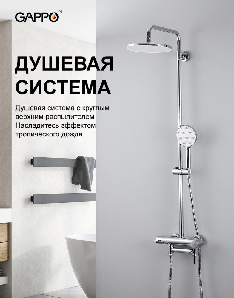 Душевая стойка Gappo G06 G2406, материал латунь, цвет хром.