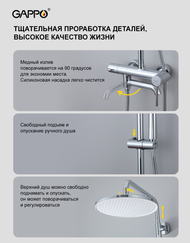Душевая стойка Gappo G06 G2406 с поворотным изливом, хром