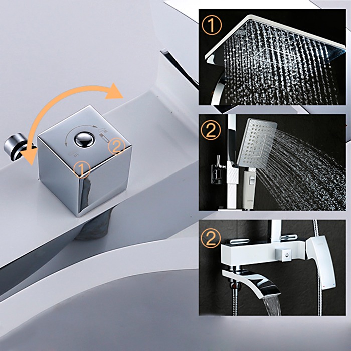 Душевая стойка с выдвижным изливом Gappo Jacob G2407-8, материал - латунь, цвет - белый/хром.