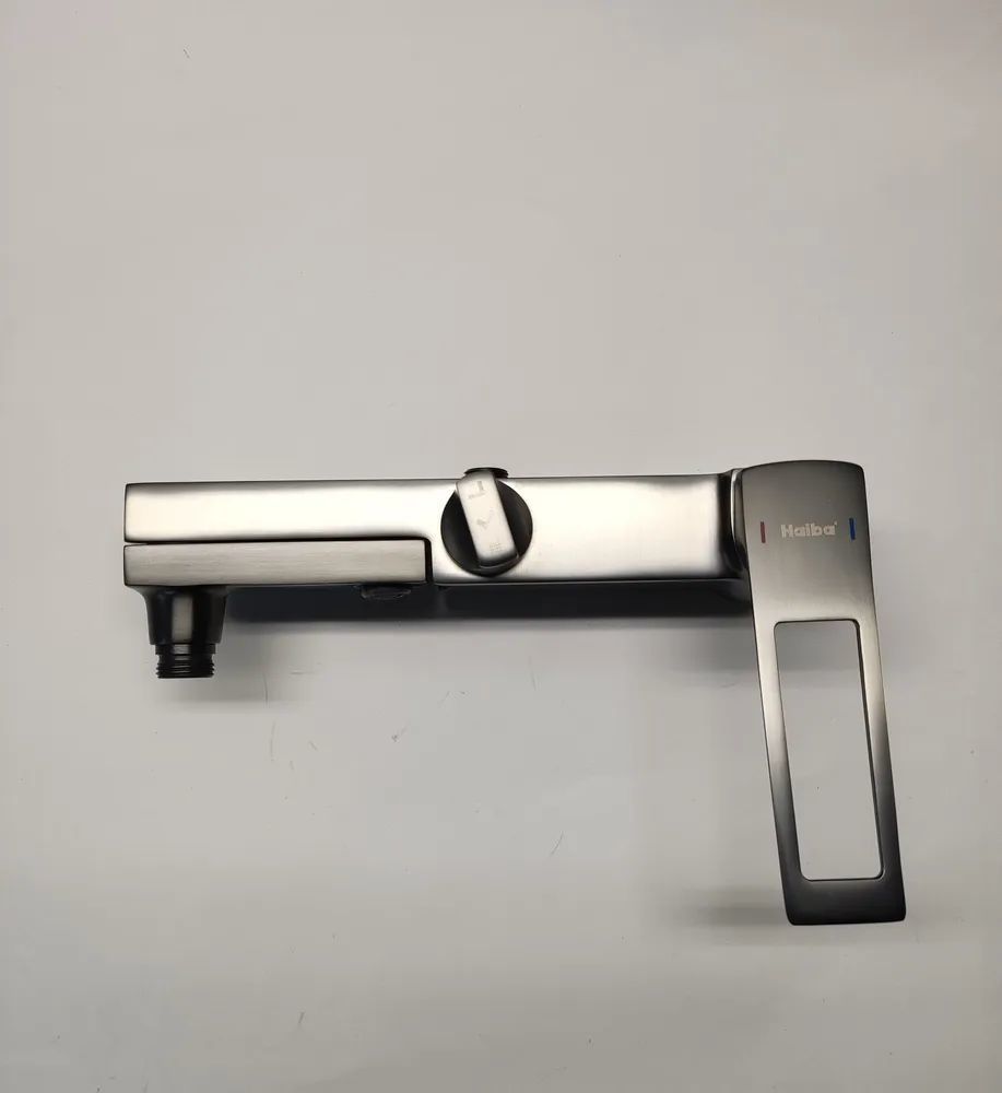 Душевая стойка с выдвижным изливом Haiba HB24817-3. Материал - латунь, цвет - вороненная сталь.