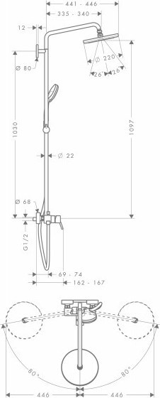 Характеристики душевая система без излива Hansgrohe (27222000)