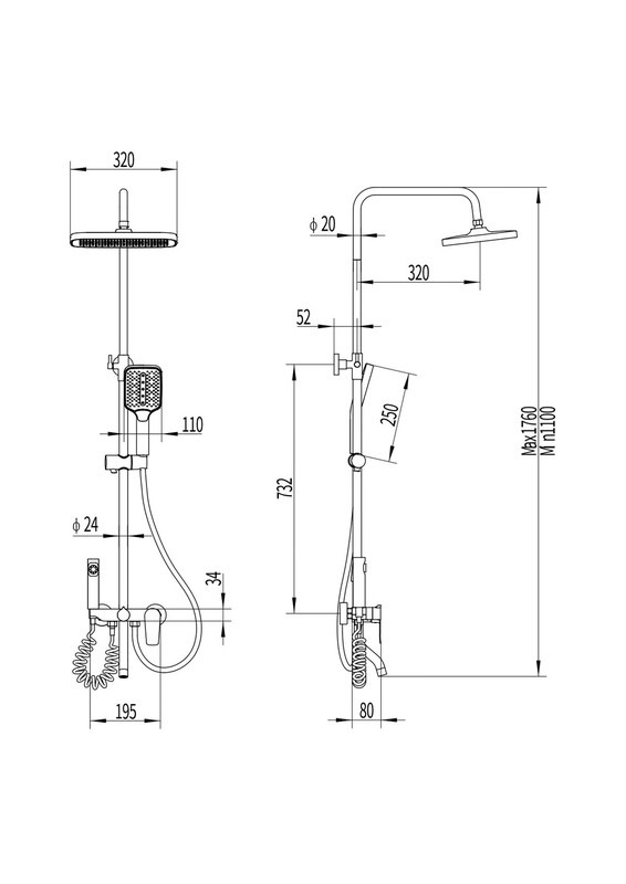 Душевая стойка с гигиеническим душем EvaGold Borneo EG400059