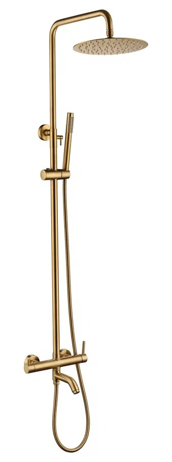 Душевая стойка с изливом Grocenberg GB7099GL, материал латунь, цвет брашированное золото.