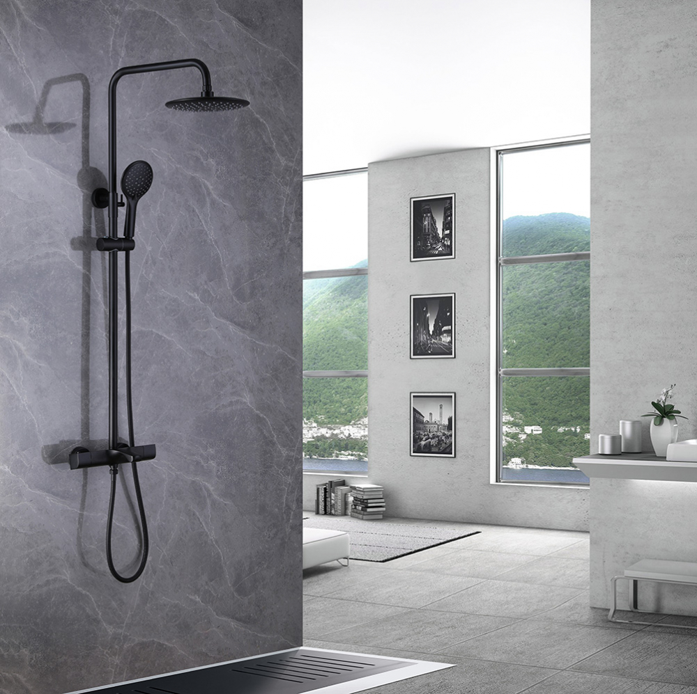 Душевая стойка с термостатом Abber Thermostat AF8516B, материал - латунь, цвет - черный матовый.