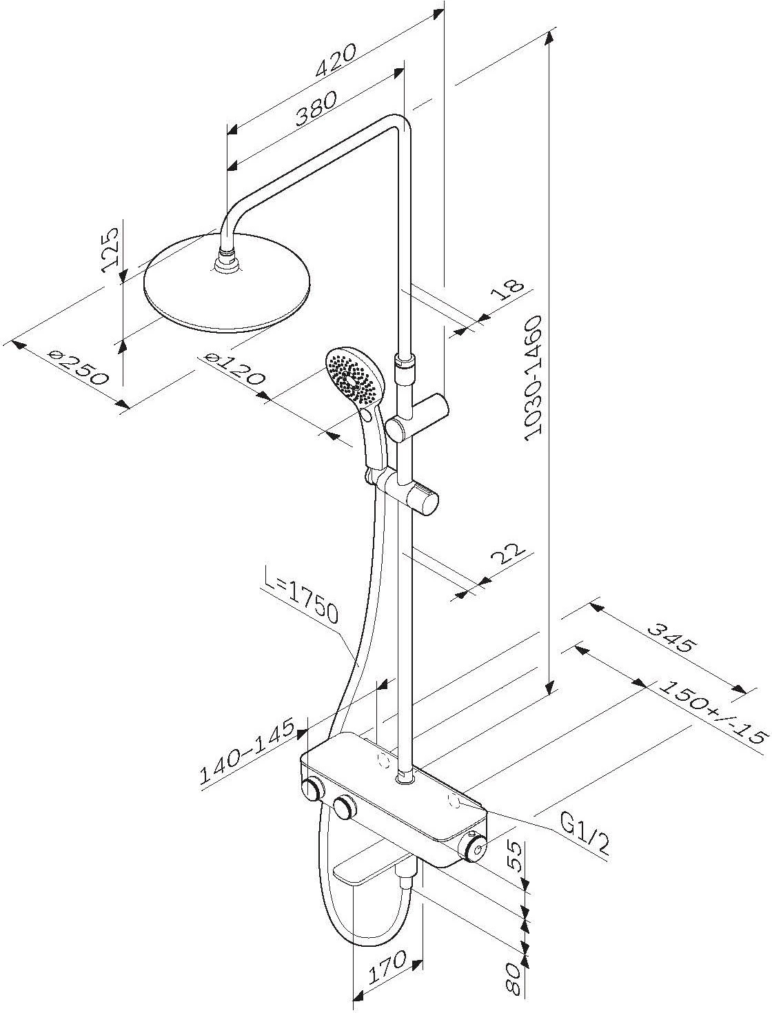 Душевая стойка с термостатом Am.Pm Inspire V2.0 F0750A500