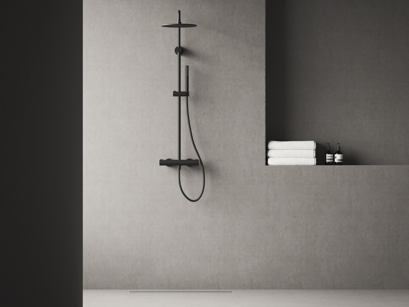 Душевая система для душа с термостатом Ravak Spring SG 091.20BL X070558, материал - латунь, цвет - чёрный матовый.