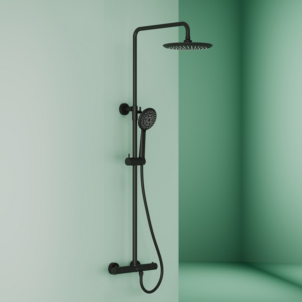 Душевая стойка с термостатом Sancos Game SC3002MB, чёрный матовый