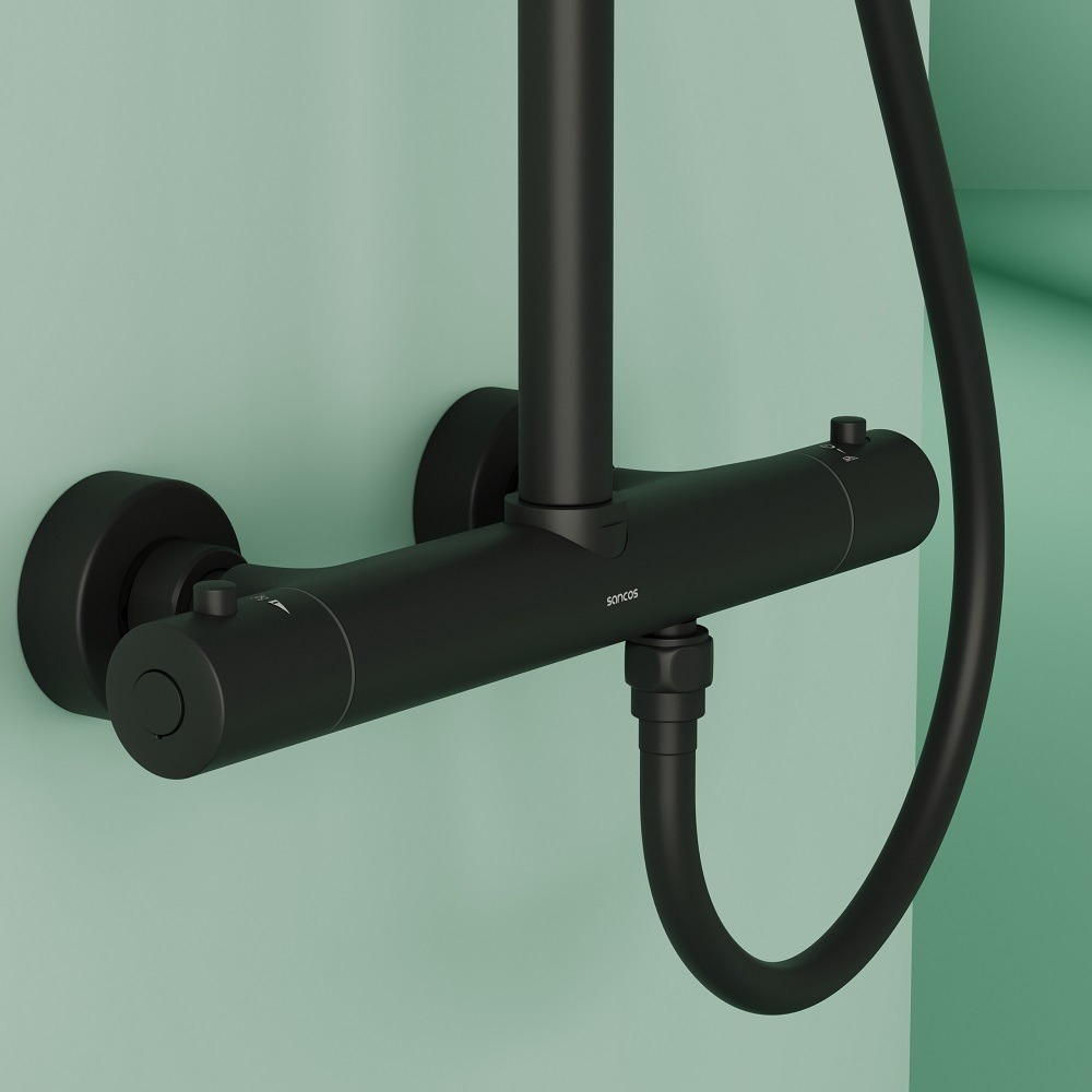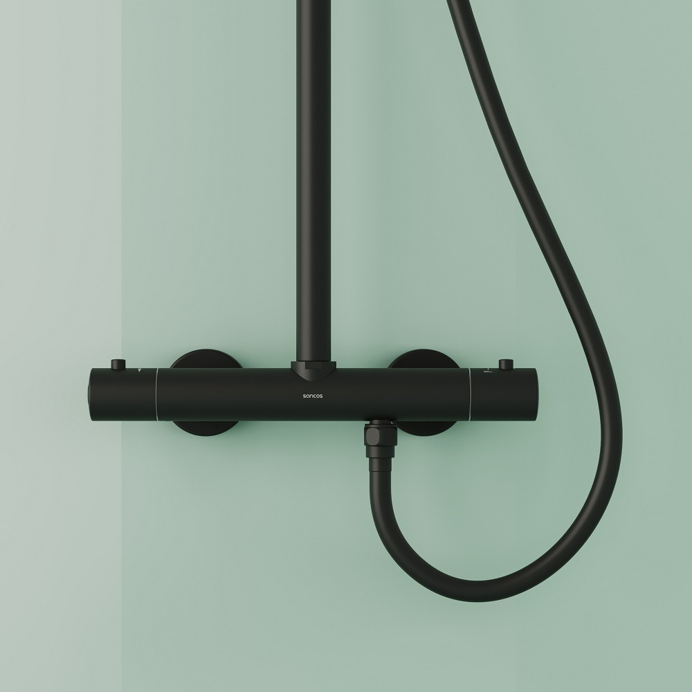 Душевая стойка с термостатом Sancos Game SC3002MB, материал - латунь, цвет - чёрный матовый.