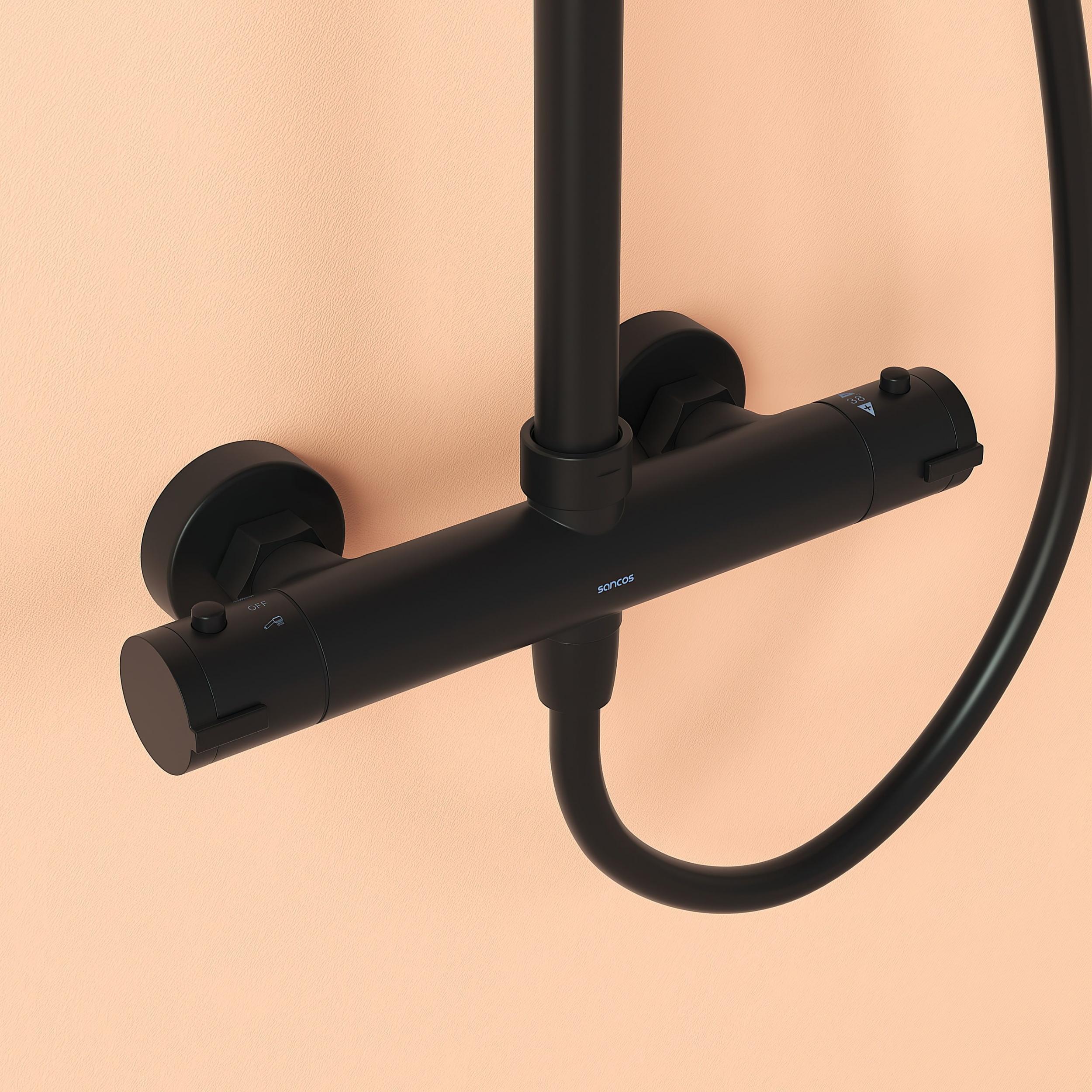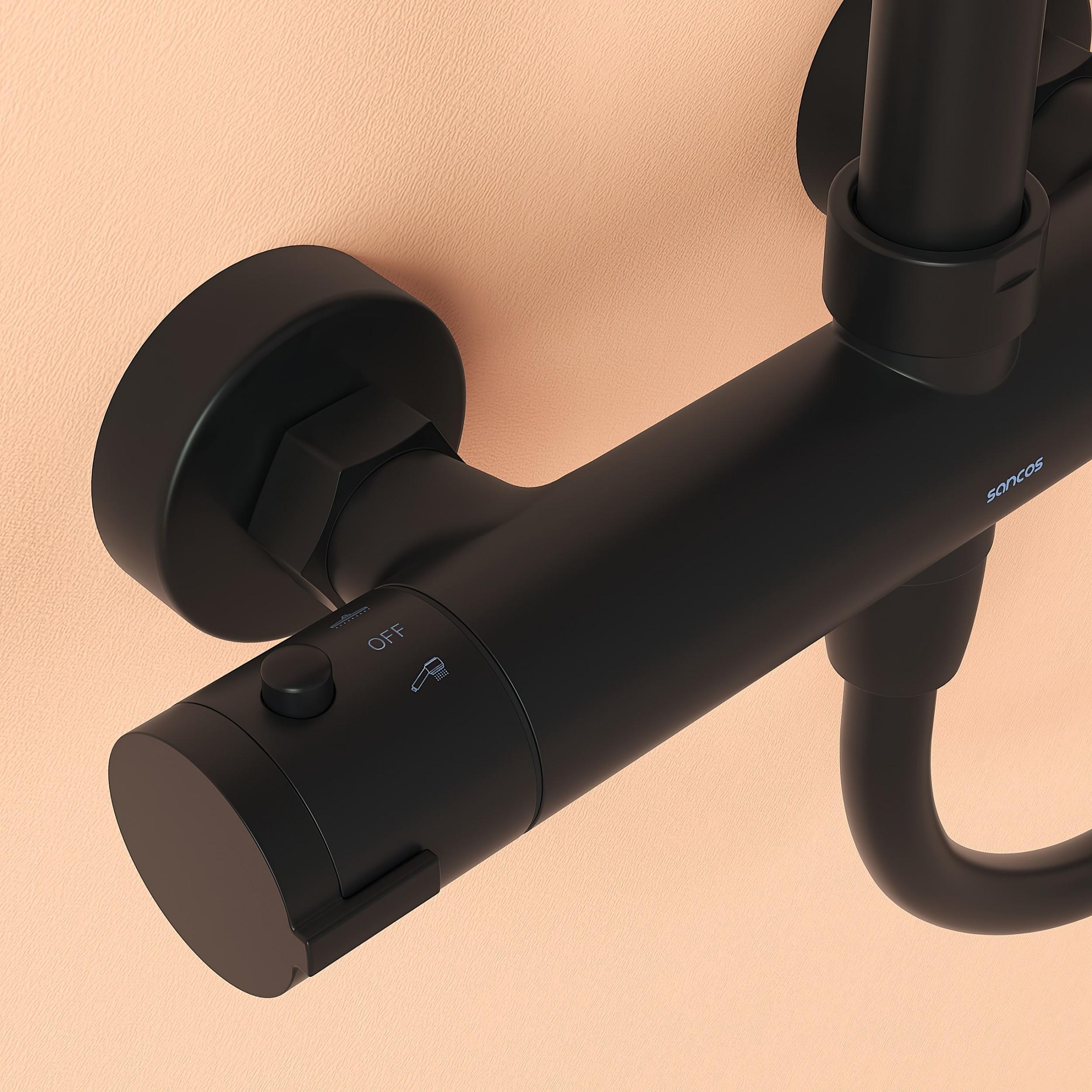 Душевая стойка с термостатом Sancos Kanedo SC7100MB, чёрный матовый
