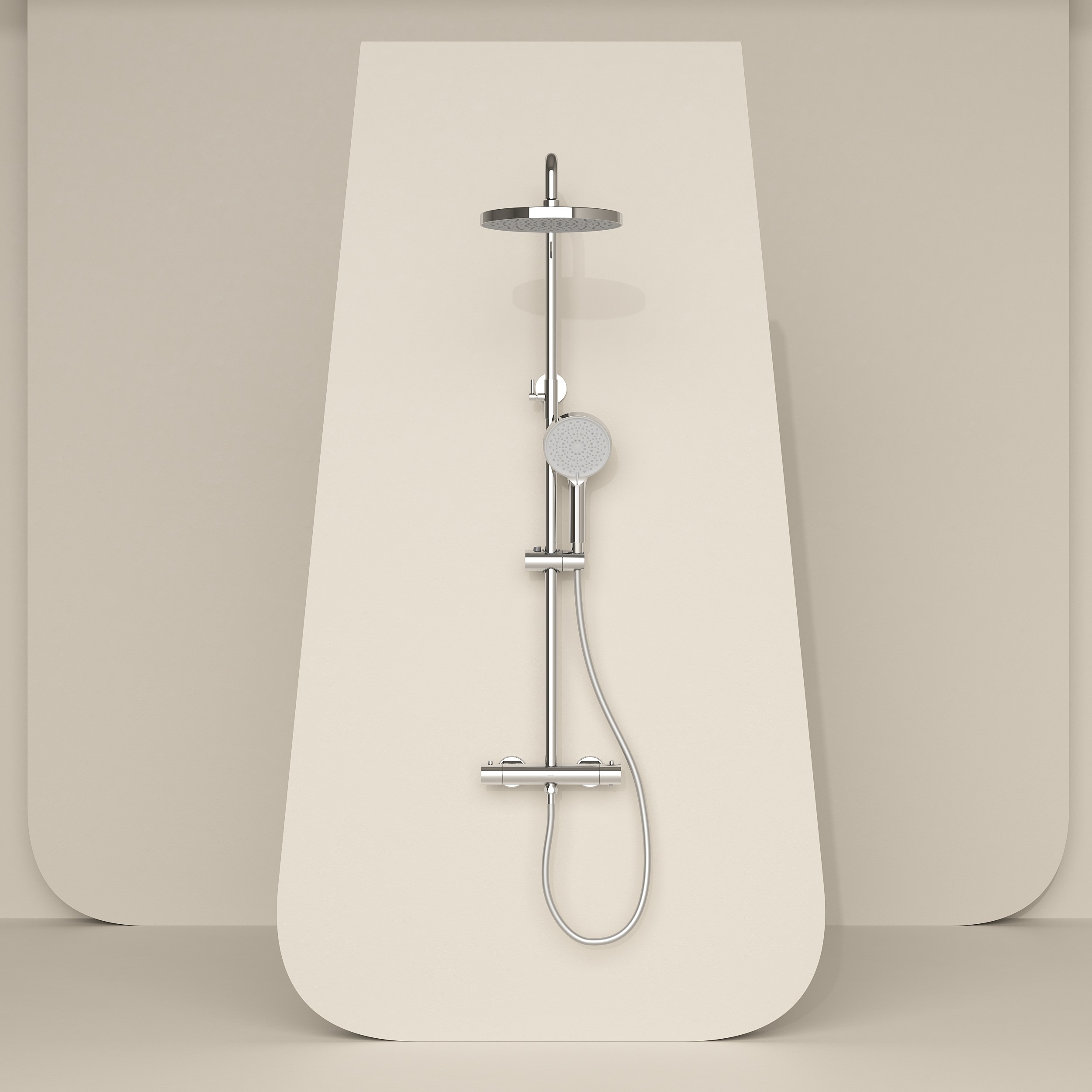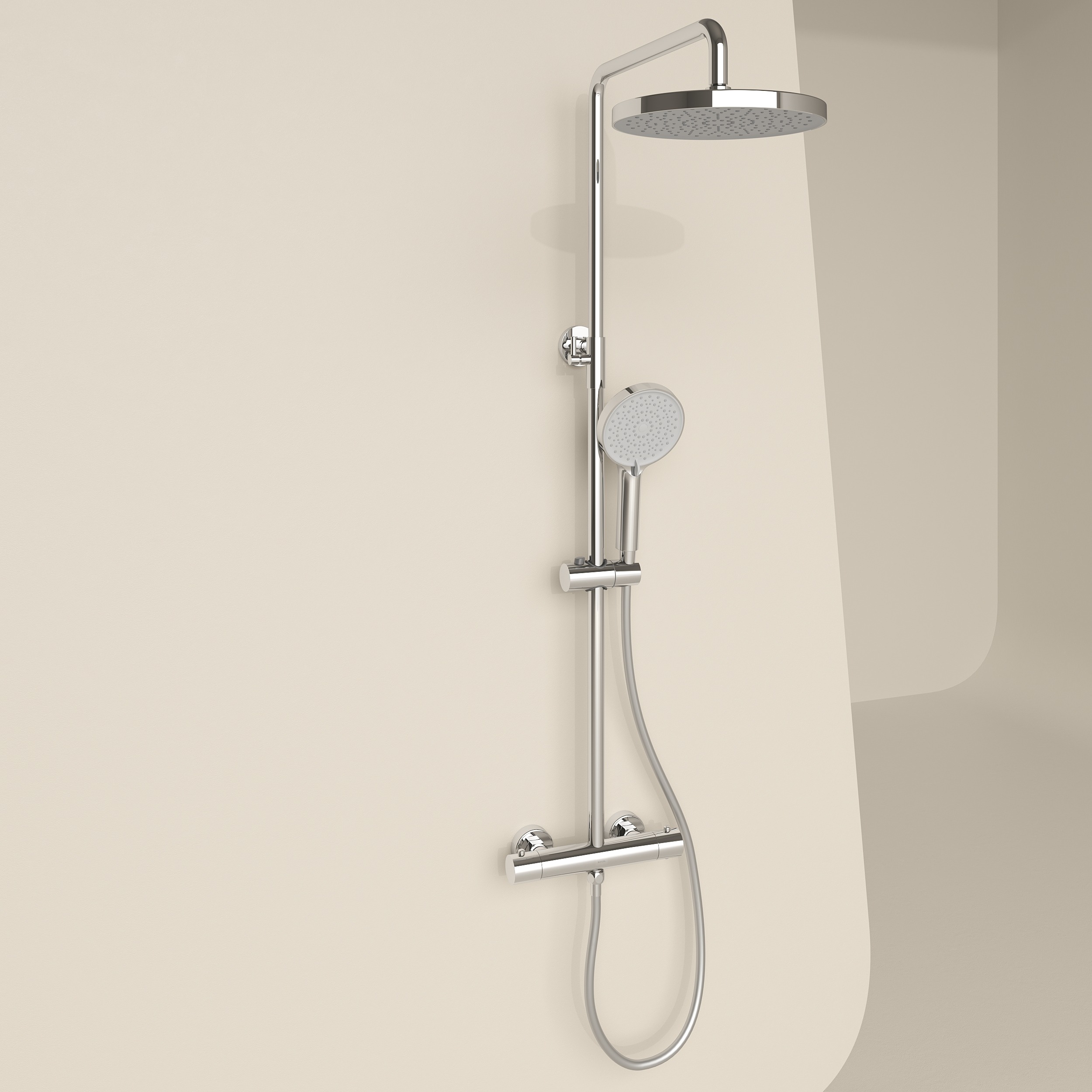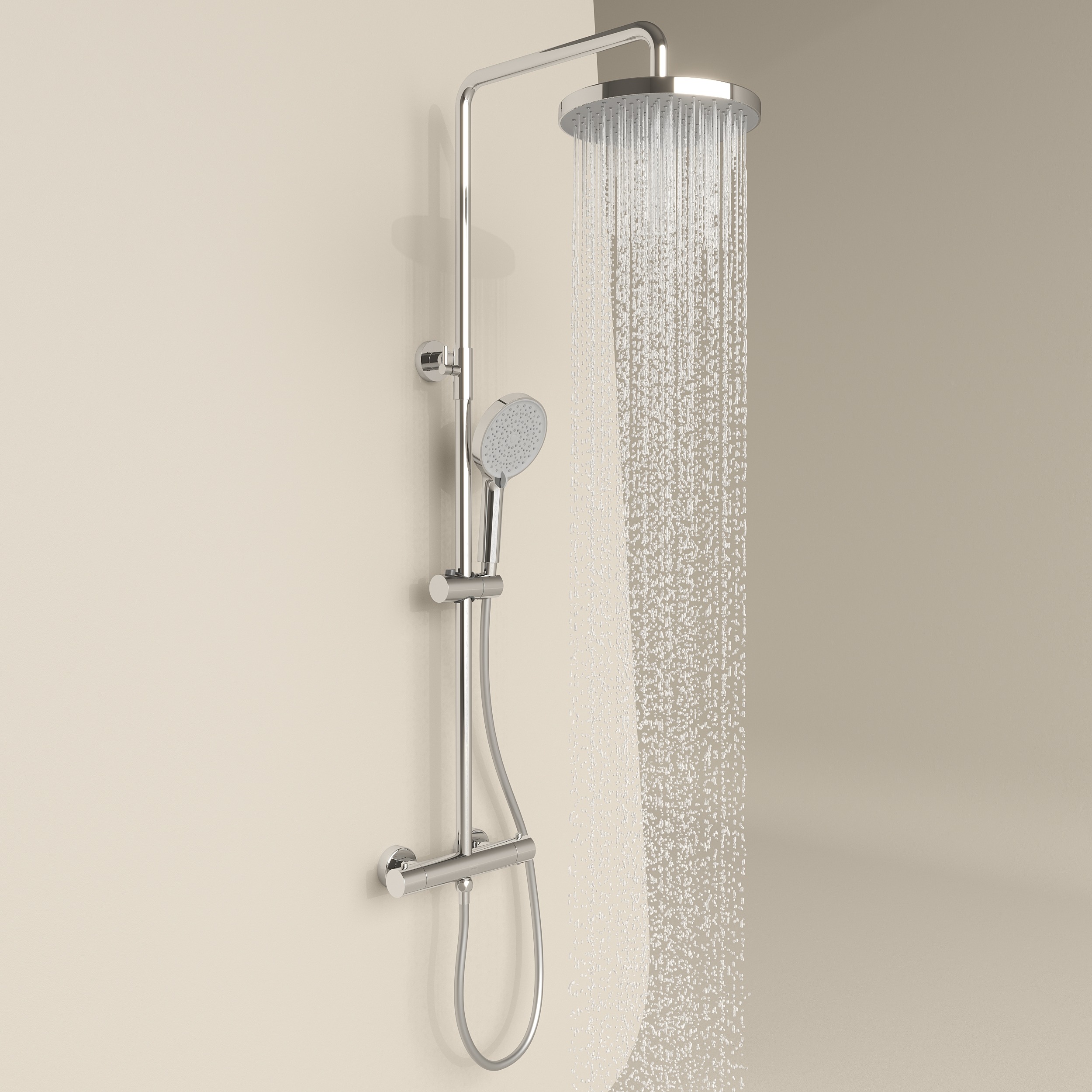 - Встроенный дивертер: быстрое и удобное переключение между верхним и ручным душем