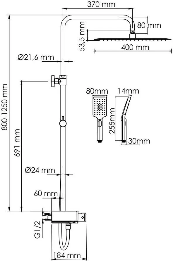- Стойка для душа, Ø 24 мм регулируемая по высоте