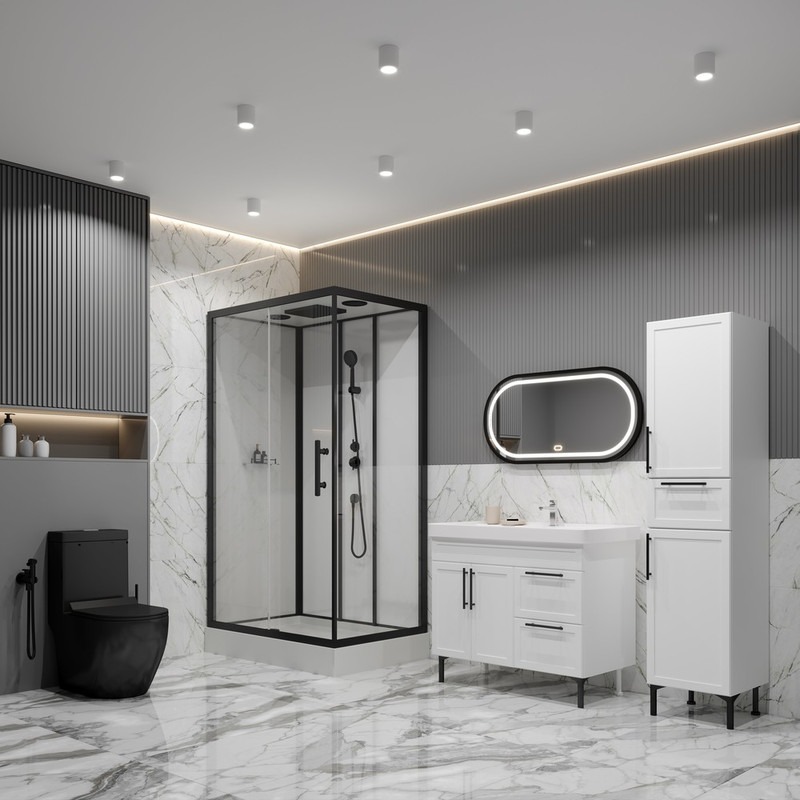 Душевое кабина EvaGold EG210022 с низким поддоном, размер 1200х800х2150 мм, профиль чёрный, стекло прозрачное.