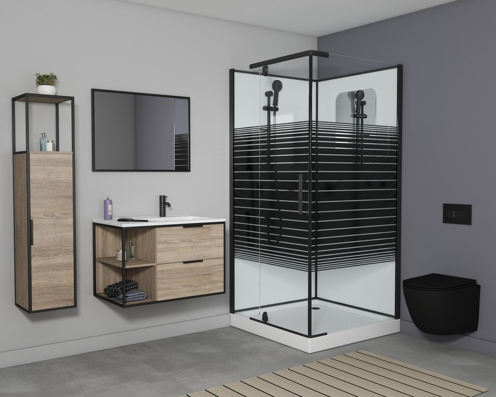 Душевое кабина Grossman Classic GR271QL, размер 900х900х2050 мм, профиль чёрный, стекло узор, левосторонняя, ширина входа 510 мм. Низкий поддон и сифон в комплекте.