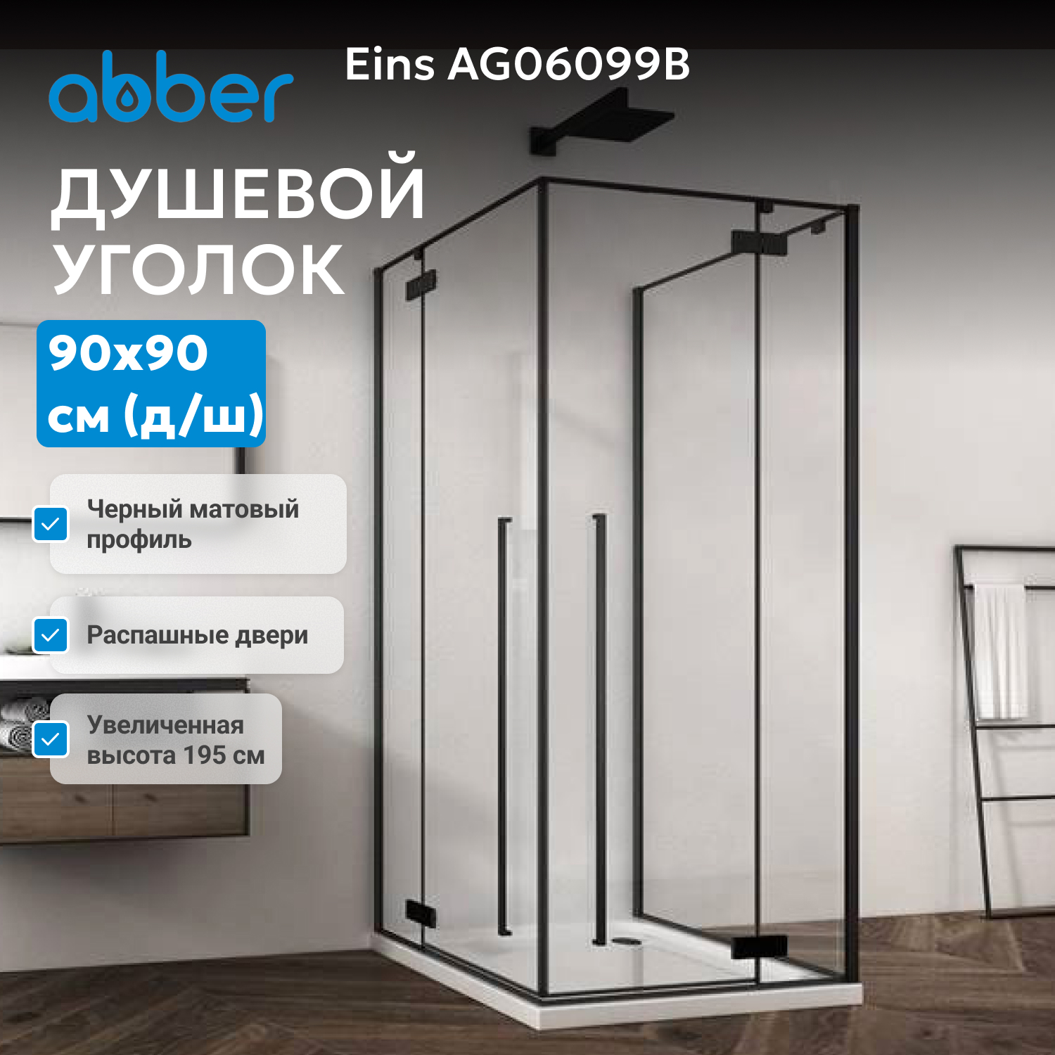 Душевое ограждение Abber Eins 90х90 см AG06099B (стекло 8 мм) чёрный/прозрачное