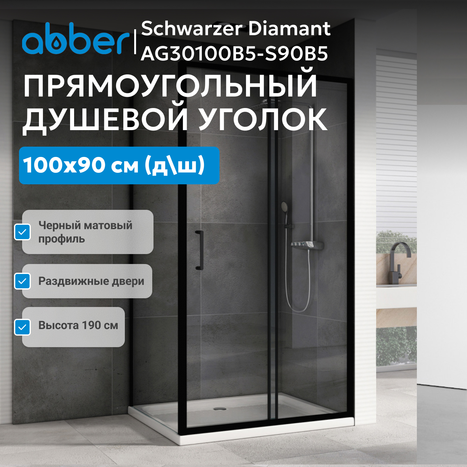 Душевое ограждение Abber Schwarzer Diamant 100х90 см AG30100B5-S90B5, чёрный/прозрачное