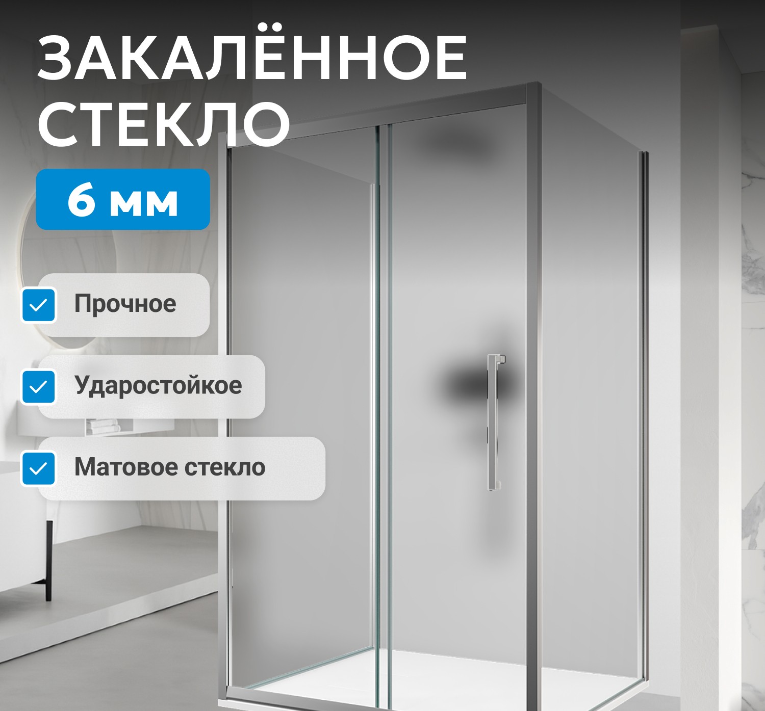 - Матовое стекло толщиной 6 мм обеспечивает приватность и прочность, хромированный профиль поддерживает устойчивость конструкции.