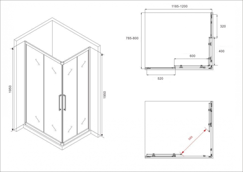 Характеристики Душевое ограждение Abber (AG02128BH)