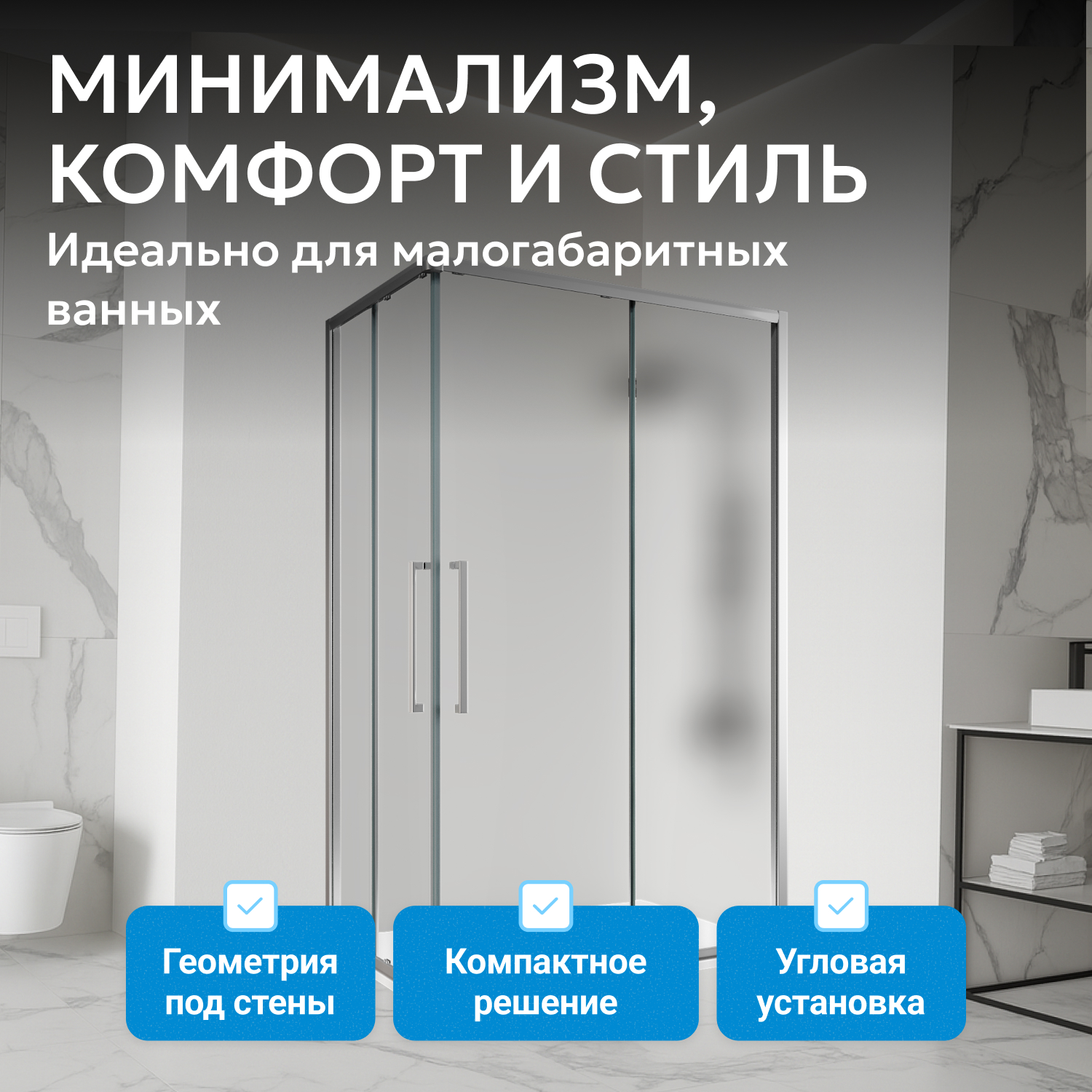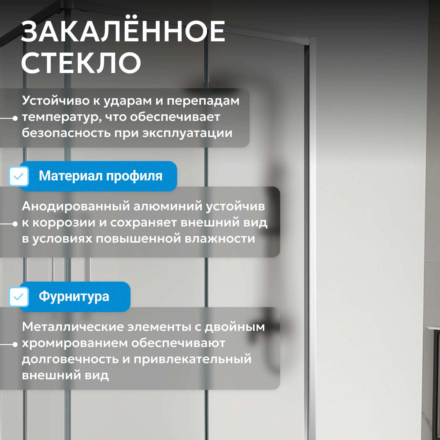 - Модель выполнена в прямоугольной форме, устанавливается в угол для экономии пространства. Раздвижные двери оснащены двойными роликами и металлическими ручками для плавного и долговечного доступа внутрь. Вход шириной 610 мм удобен для пользователей разного возраста.