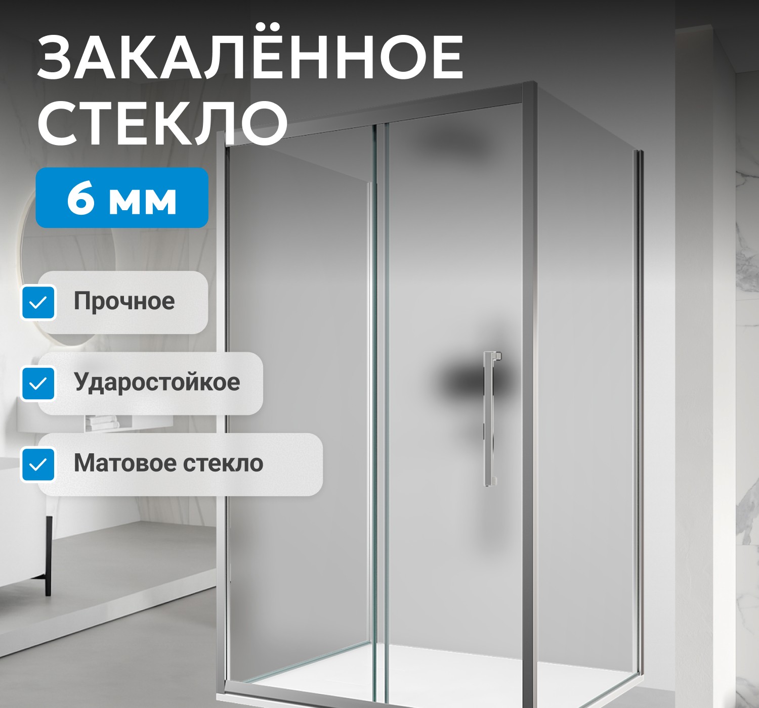 - закаленное, матовое стекло 6 мм