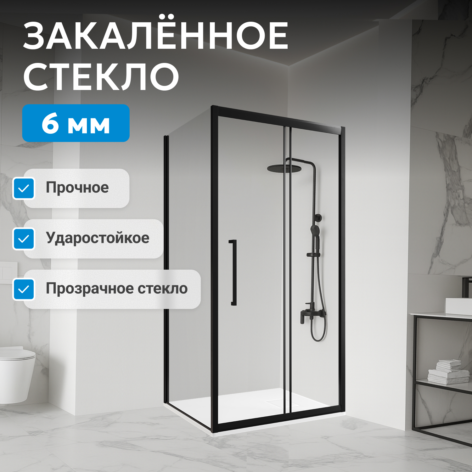 - Раздвижная дверь на двойных металлических роликах обеспечивает плавное открывание и повышенную долговечность. Высота конструкции — 195 см, подходящая для пользователей разного роста. Металлическая ручка устойчива к износу. Для монтажа требуется низкий поддон (приобретается отдельно), что дает гибкость выбора и адаптацию под интерьер.
