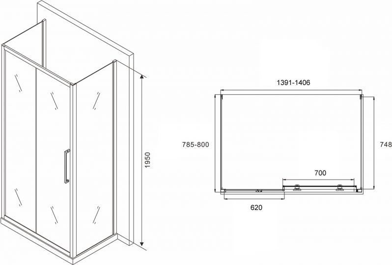 Описание Душевое ограждение Abber AG30140H-S80-S80