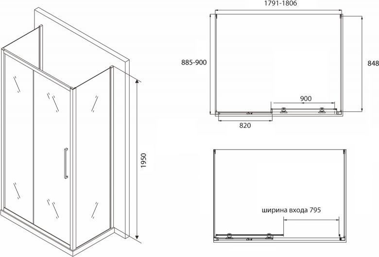 Характеристики Душевое ограждение Abber (AG30180BH-S90B-S90B)