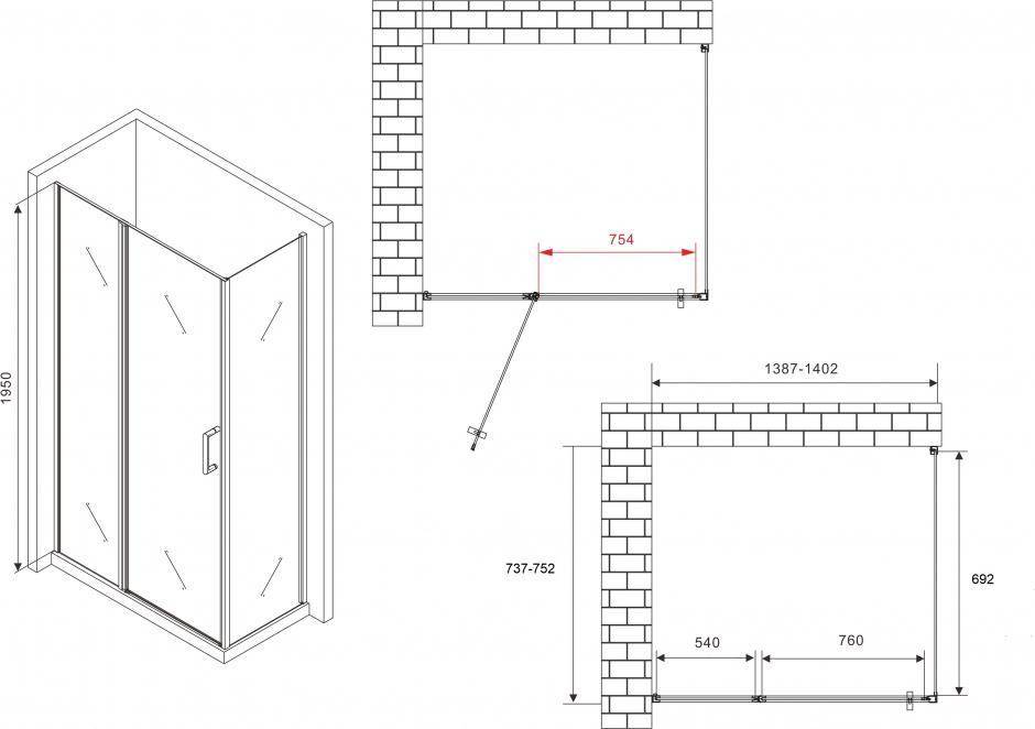 Душевое ограждение Abber Sonnenstrand AG04140S-S75 1400х750х1950 мм, профиль - хром, стекло - прозрачное 6 мм. Поддон приобретается отдельно. Ширина входа 754 мм, габариты с регулировками: (1387-1402)х(737-752) мм.