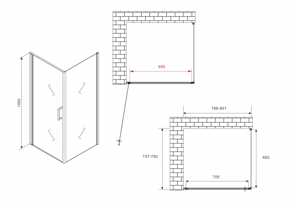 - Прямоугольный душевой уголок