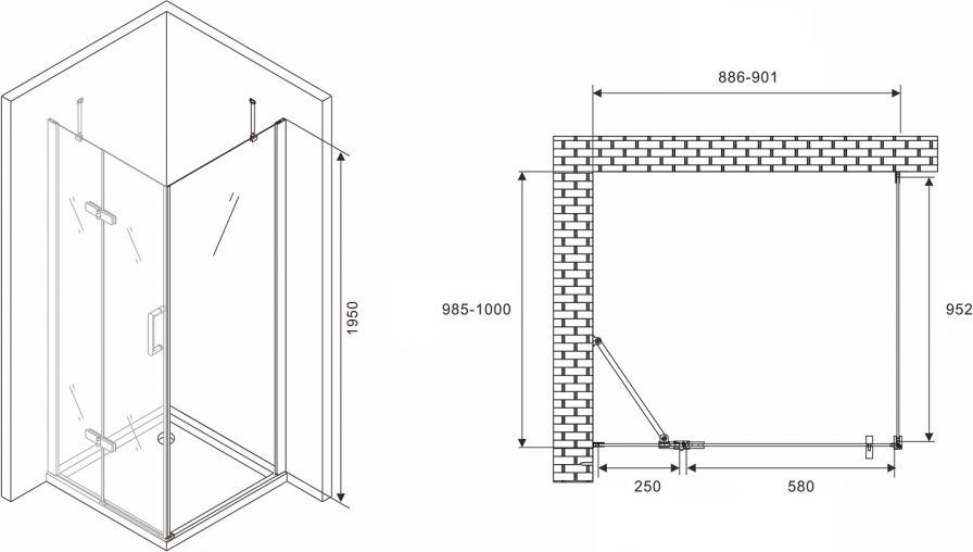 Душевое ограждение Abber Zart AG08090-S101 900х1000х1950 мм, профиль - хром, стекло - прозрачное 6 мм. Поддон приобретается отдельно. Дверь 90 см, душевая стенка 100 см.