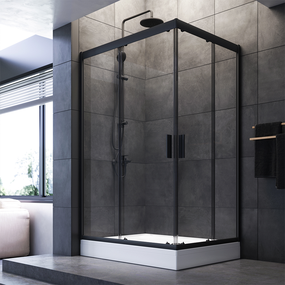 Душевое ограждение Am.Pm Gem Twin Slide 120x90 см W90G-404-120290-BT, черный/прозрачное