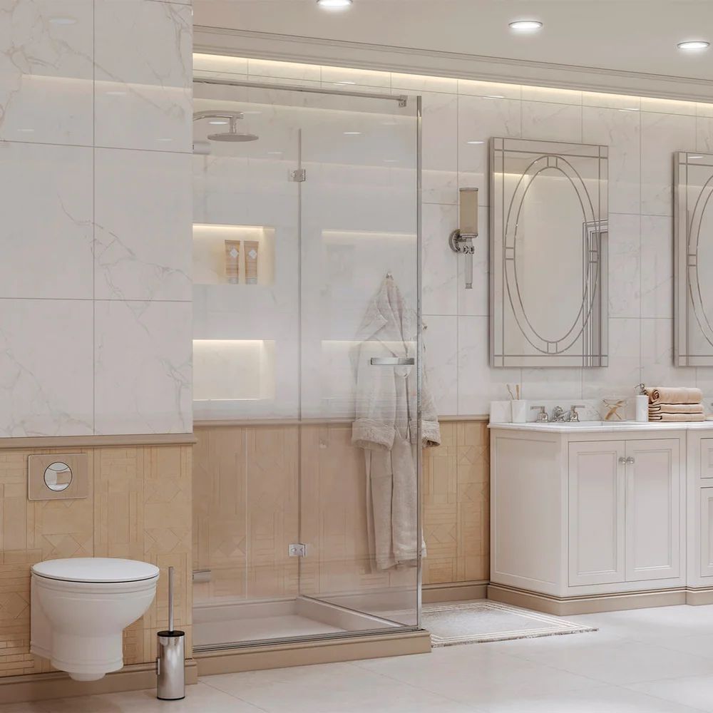 Душевое ограждение Ambassador Abner с держателем, размер 1000х1000х2000 мм, профиль хром, стекло прозрачное 8 мм, ширина входа 920 мм. Поддон приобретается отдельно.