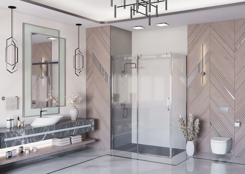 - Тип: душевое ограждение (дверь в нишу+боковая стенка)