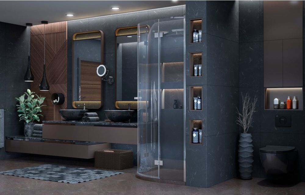 - Душевое ограждение устанавливается в облицованный керамической плиткой угол ванной комнаты.