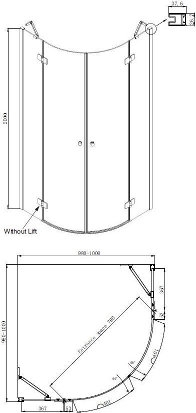 Душевое ограждение Ambassador Diamond с держателями, размер 1000х1000х2000 мм, профиль хром, стекло прозрачное 6 мм. Габариты регулировки (980-1000)х(980-1000)х2000 мм, ширина входа 790 мм. Поддон приобретается отдельно.