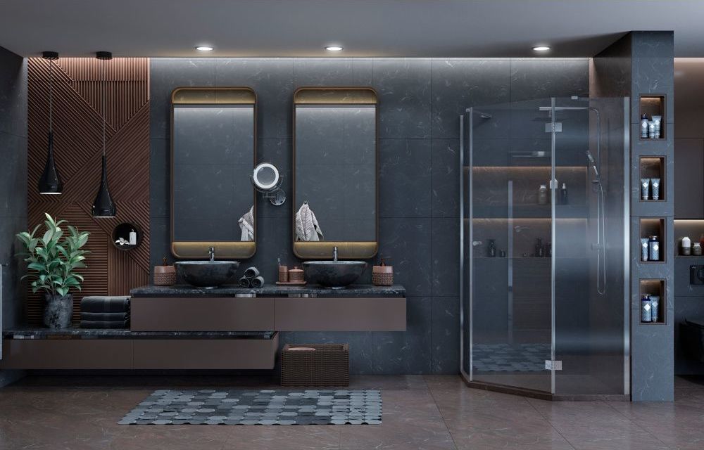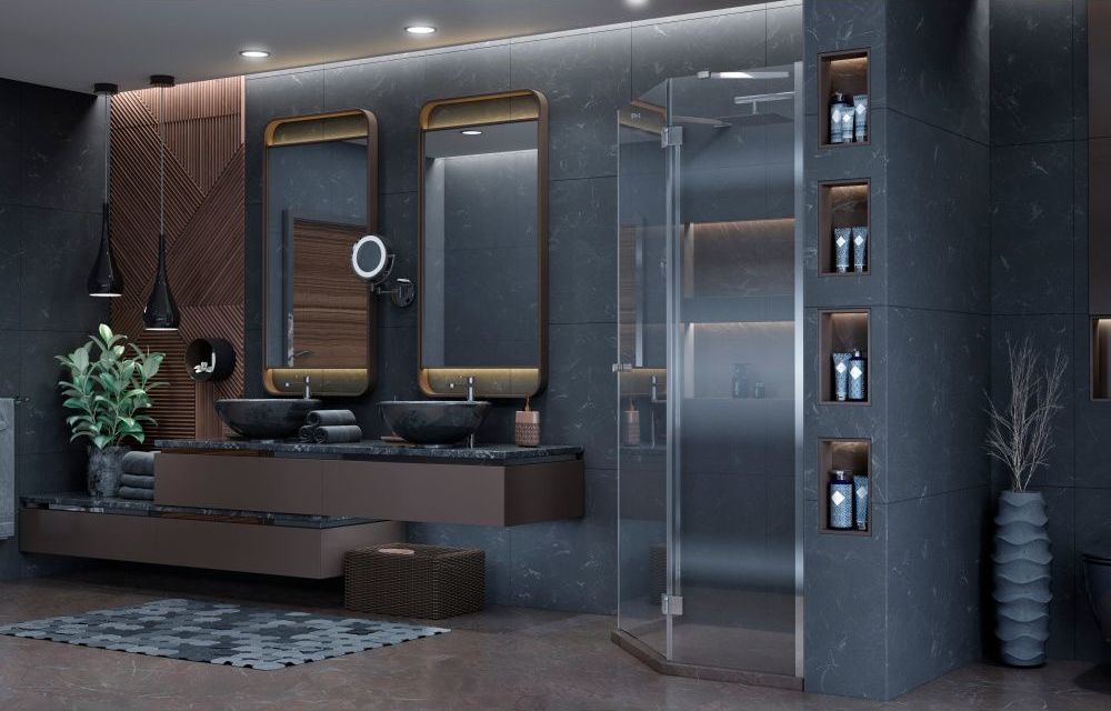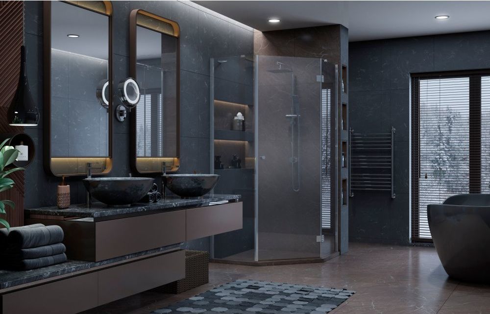 - Душевое ограждение устанавливается в облицованный керамической плиткой угол ванной комнаты.