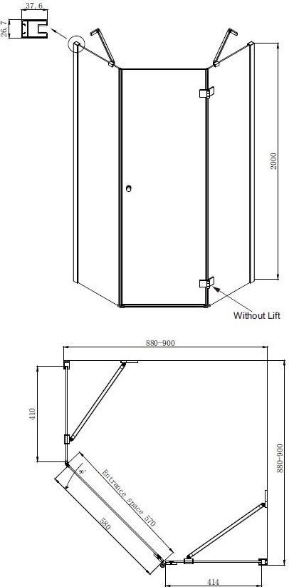 Душевое ограждение Ambassador Diamond с держателями, размер 900х900х2000 мм, профиль хром, стекло прозрачное 6 мм. Габариты регулировки (880-900)х(880-900)х2000 мм, ширина входа 570 мм. Поддон приобретается отдельно.