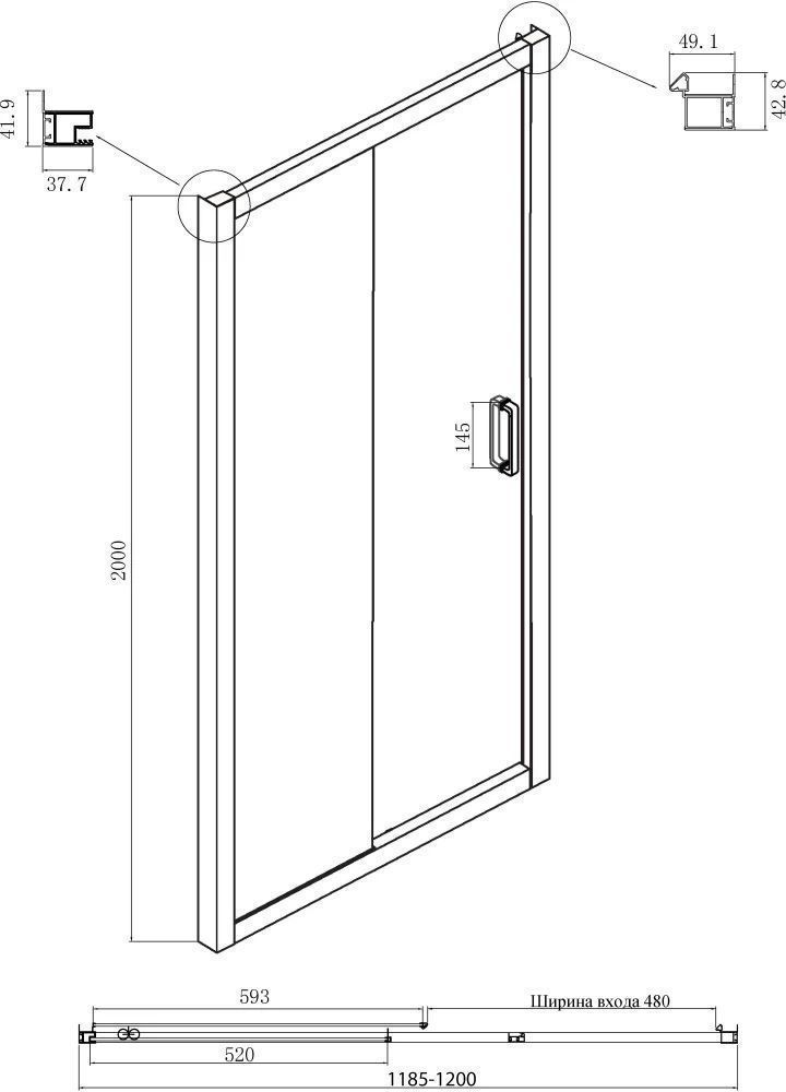 Душевое ограждение Ambassador Forsa, размер 1200х900х2000 мм, профиль чёрный, стекло тонированное 6 мм. Габариты регулировки (1185-1200)х(885-900)х2000 мм, ширина входа 480 мм. Поддон приобретается отдельно. Дверь 120 см, душевая стенка 90 см.