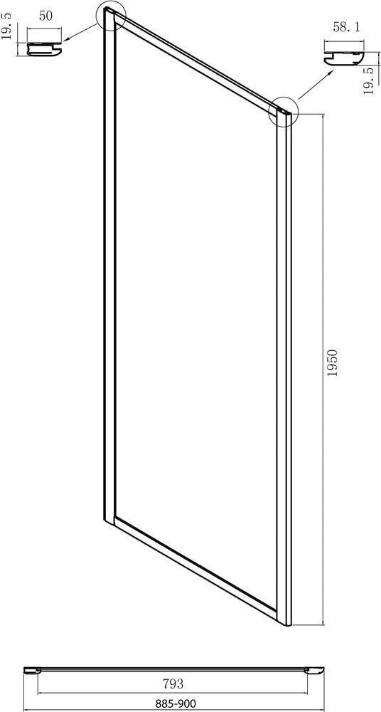 - Тип: душевое ограждение (дверь в нишу + боковая стенка)