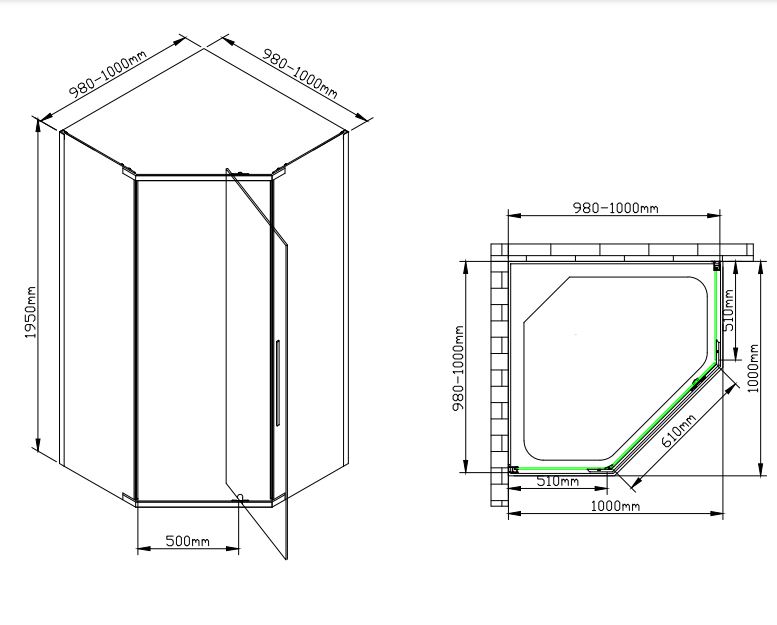 - Душевой уголок AvaCan PB 100 размер 980-1000-195