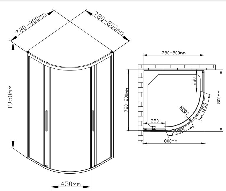 Душевое ограждение Avacan 80х80 см HB80, чёрный/узор