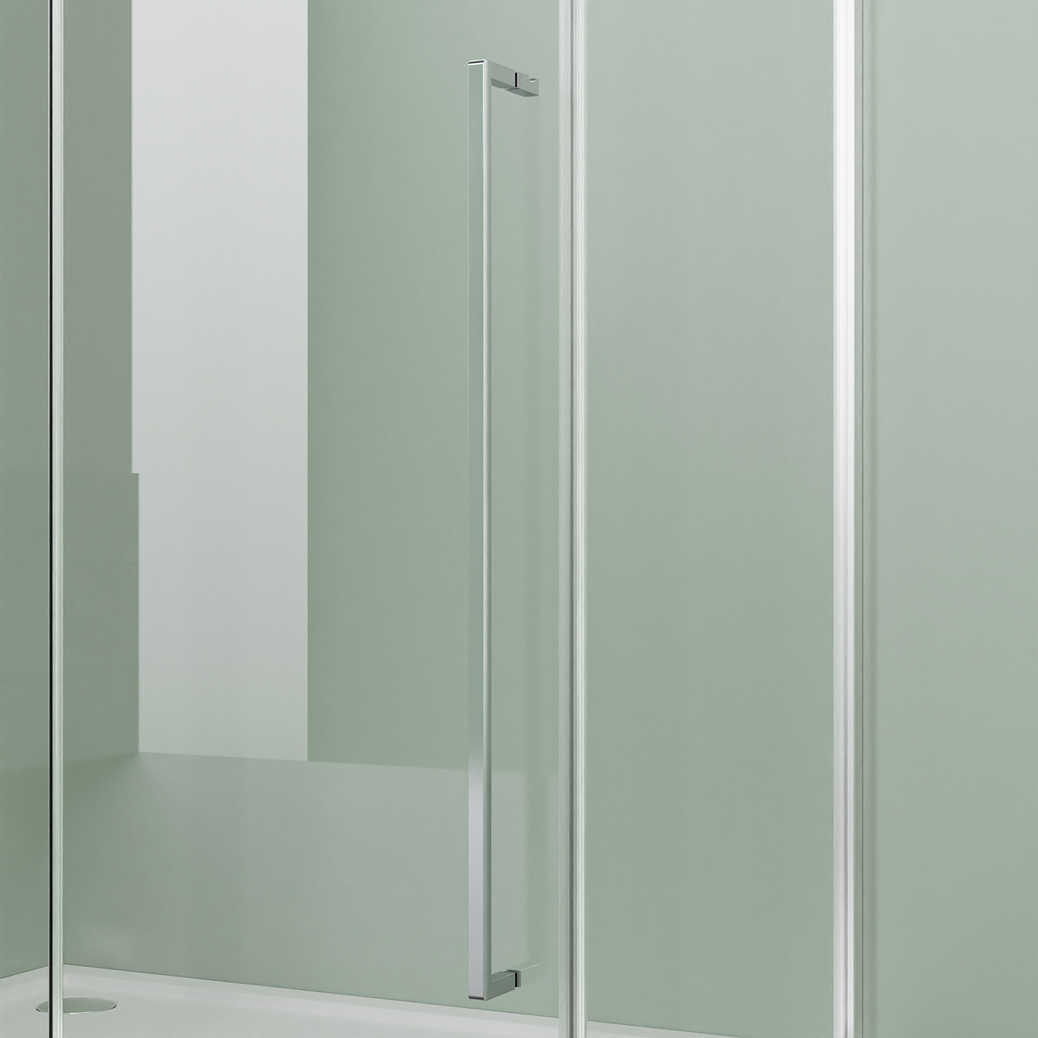 - Прямоугольный душевой уголок, с одной распашной дверью, на усиленных универсальных поворотных петлях из нержавеющей стали.