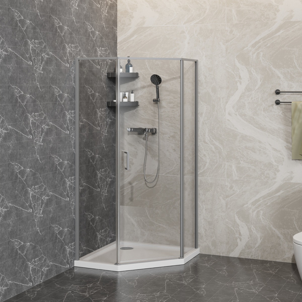 - Пятиугольный душевой уголок, с универсальной распашной дверью (L/R), на усиленном механизме микролифт.