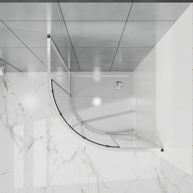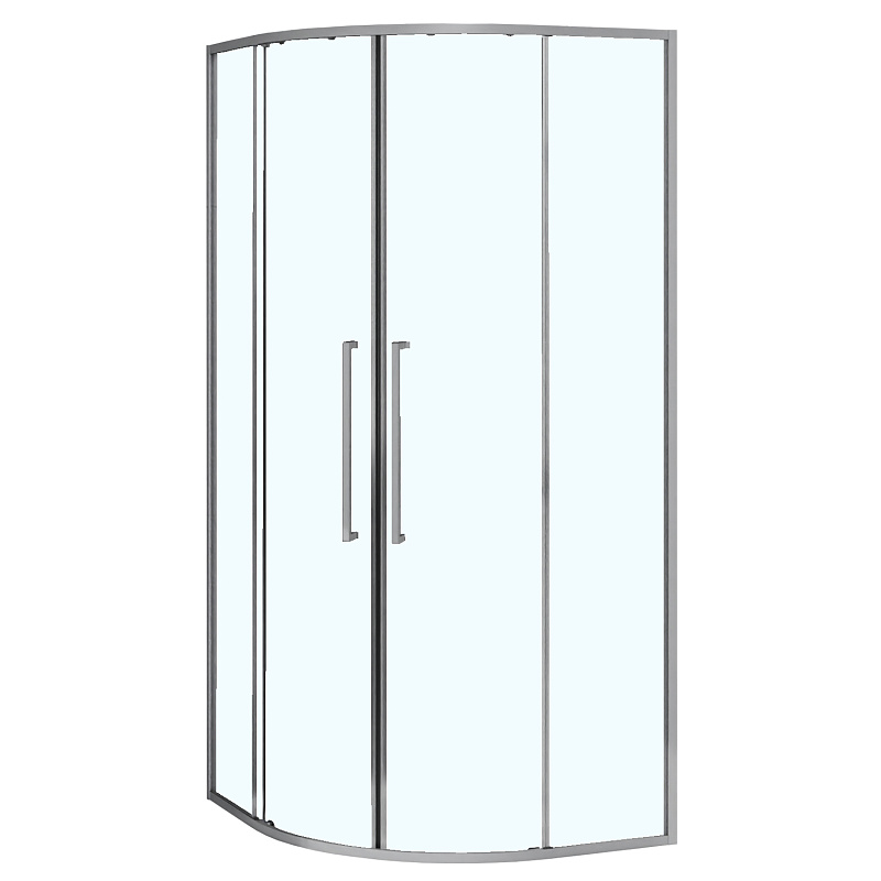 - Радиусный душевой уголок 1/4 круга ВХОД С УГЛА, с двумя раздвижными дверьми, на двойных роликах с нержавеющими подшипниками.